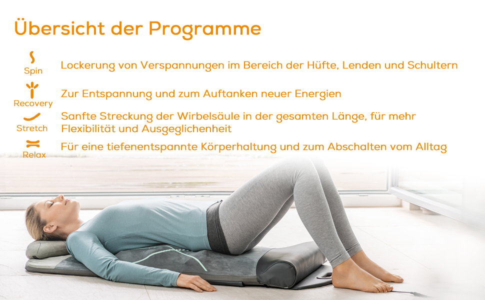 Die Stretchmatte ist mit Luftkammern ausgestattet, die sich so aufblasen, dass Sie eine von Yoga inspirierte Dehnung für Schultern, Rücken und Nacken erleben. Die Wärme- und Vibrationsfunktion lässt sich individuell zuschalten. Bleiben Sie fit und steigern Sie Ihre Beweglichkeit.